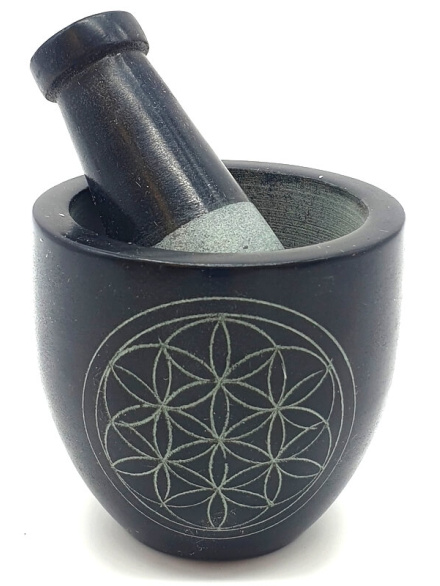 Mortier Pierre Saponite Noir Fleur de Vie 8cm