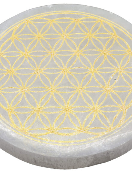 Plaque Sélénite Fleur de Vie Dorée 10cm